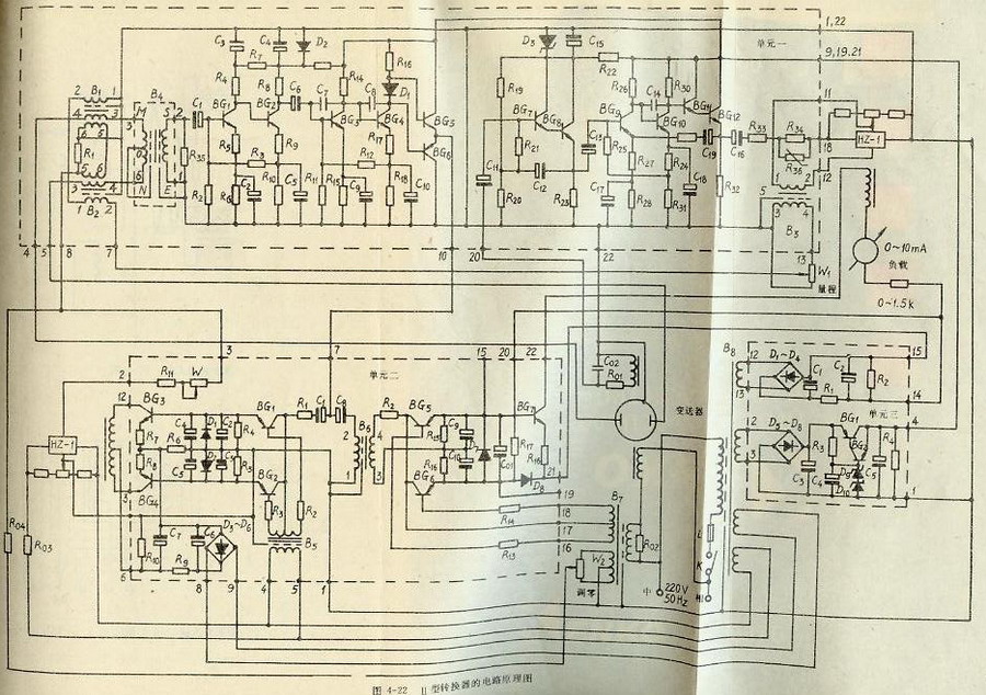 LDZ-Ⅱ型電磁流量轉換器 一、工作原理 二、單元電路分析 ㈠ 輸入比較電路 Ⅱ型轉換器的輸入比較電路與Ⅰ型轉換器的作用完全相同。它是由兩只反饋變壓器B1、B2組成,如圖4-23所示。由變送器來的感應電動勢e(包括干擾電壓)輸入到反饋變壓器B1、B2的次級線圈3、4兩端,與線圈1、2兩端的反饋電壓ef和另一組線圈5、6兩端的90°干擾反饋電壓efi進行比較,得偏差電壓ex與egi輸出至下一級輸入變壓器。 ㈡ 輸入變壓器 ㈢ 交流放大器、同期相敏整流器、直流功率放大器和霍爾乘法器 ㈣ 磁場補償放大器 ㈤ 90°干擾補償器 ㈥ 電源 三、轉換器的一般調整和校驗 ㈠ 校驗轉換器時的接線方法 ㈡ 通電檢查 ㈢ 轉換器的閉環和交流放大器的負反饋調整 ㈣ 基本誤差校驗 四、主要技術指標