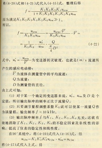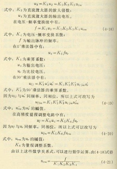 一、方框圖和工作原理 ㈠ 流量信號閉環負反饋系統 ㈡ 90°干擾自動補償系統 ㈢ 頻率-電流變換系統 在這個系統中,把0-10kHz的定寬脈沖變換成0-10mA(D.C)或4-20mA(D.C)統一信號輸出。 根據上述各方框的功能,可以列出下列數學關系:在輸入級中有usr+iusj+uf+iufj=uc+iucj 二、互換原理 三、線路分析 ㈠ 放大器 1.交流放大器 2.直流放大器 ㈡ 相敏整流器 ㈢ 電壓-頻率變換器 1.電壓-頻率變換電路 ⑴ 變換過程 ⑵ 數學關系 2.脈沖整形電路 ⑴ 電路的穩定狀態 ⑵ 脈沖前沿過程 ⑶ 準穩態過程 ⑷ 關于脈寬穩定性的討論 3.倒相器 ㈣ 0°乘法器 ㈤ 高精度量程調整裝置 ㈥90°乘法器 ㈦ 頻率-電流變換系統 1.頻率-電壓變換電路 2. 穩壓電源 3. 阻尼裝置 4. 電壓-電流變換電路 四、調試和校驗 ㈠ 單元(1)的調試 ㈡ 單元(2)的調試 ㈢ 單元(3)的調試 ㈣ 單元(4)的調試 ㈤ 整機調試 五、主要技術指標