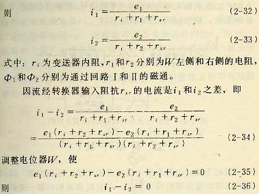 如圖2-27所示,這種方法是在一個(gè)電極上引出兩根導(dǎo)線,分別接在一個(gè)電位器W的兩端,另一個(gè)電極的引出線和電位器W的中端分別接到轉(zhuǎn)換器的輸入端,即rsr的兩端。這樣就形成了兩個(gè)閉合回路Ⅰ和Ⅱ,在磁場(chǎng)中磁通相互交鏈。在閉合回路Ⅰ中感應(yīng)產(chǎn)生的電動(dòng)勢(shì)e1和閉合回路Ⅱ中感應(yīng)產(chǎn)生的電動(dòng)勢(shì)e2各自形成電流i1和i2. i1和i2分別經(jīng)過電位器中端加到轉(zhuǎn)換器的輸入電阻rsr上。因這兩個(gè)電流的方向是相反,當(dāng)被測(cè)液體的流速為零時(shí),調(diào)整電位器w中心觸點(diǎn)的位置,可以找到一個(gè)平衡點(diǎn),是兩個(gè)閉合回路中的電流i1和i2大小相等,這樣流經(jīng)rsr上的電流i1和i2就可以相互抵消。其關(guān)系可用下列式子來表示。