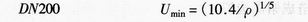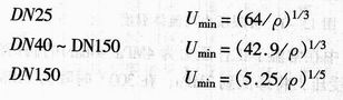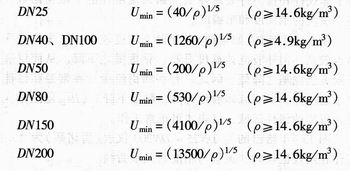 對(duì)于氣體和蒸汽,不同公稱通徑最低流速的經(jīng)驗(yàn)公式如下: