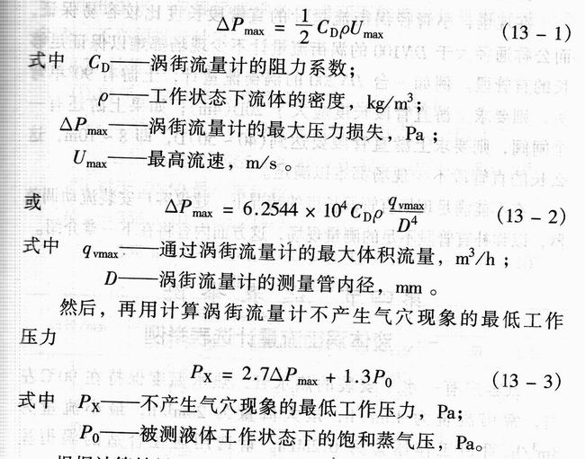 選定渦街流量計(jì)的公稱通徑后,還應(yīng)根據(jù)最大流量、儀表通徑及工作狀態(tài)下流體密度,核算渦街流量計(jì)的最大壓力